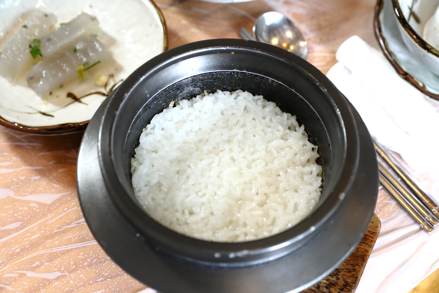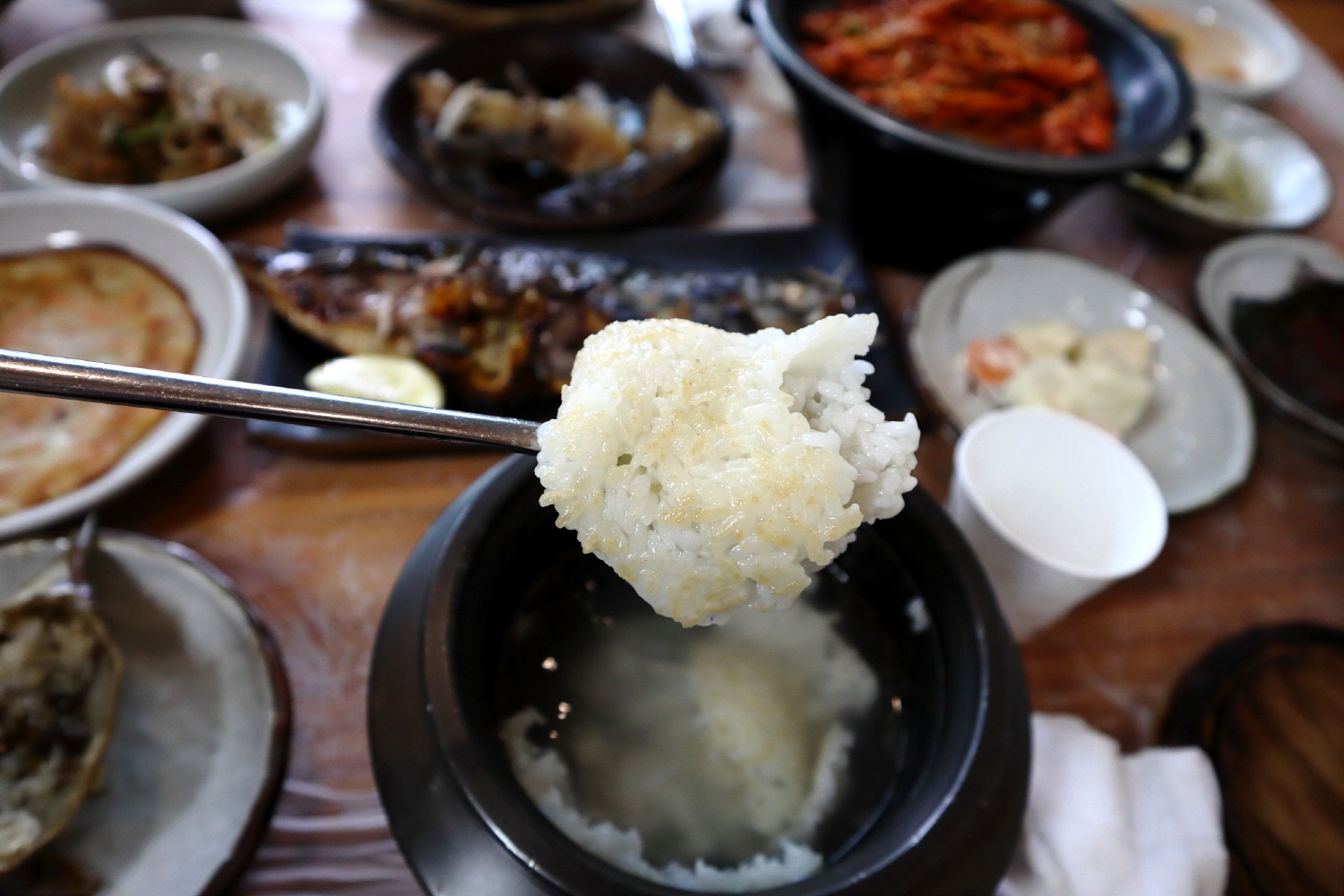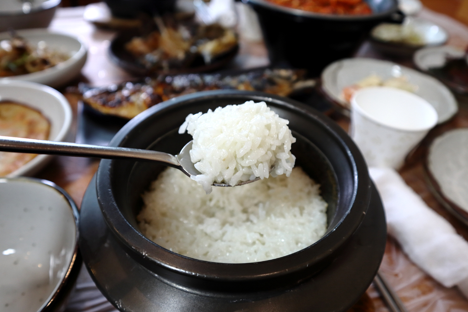 갓 지은 돌솥밥을 맛볼 차례였어요. 주문과 동시에