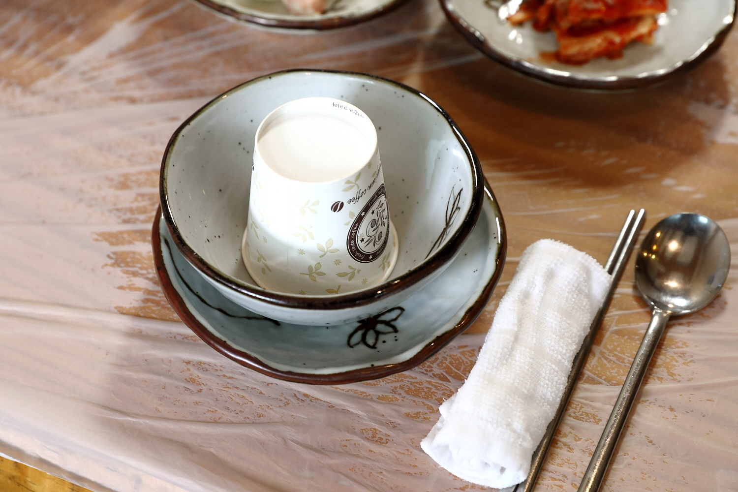 깔끔한 식기 세팅과 개인접시를 넉넉하게